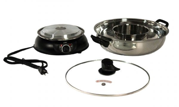 SPT SS-303 多功能炊具是多道菜餐点的完美解决方案。采用 5 夸脱食品级 18/8 (304) 不锈钢碗和专门设计的碗中碗结构,您可以获得卓越的耐腐蚀性和两个用于不同汤的隔间。符合人体工程学设计的冷触手柄和旋钮确保轻松放置和热安全,而钢化玻璃盖则确保快速、均匀的加热。自动断电功能会在过热的情况下启动,另外请记住保持两个隔间中的汤液位均匀,以防止汤底混合。 ETL认证。
